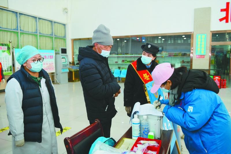 圖為拉薩北郊客運汽車站內,青年志愿者在登記老年旅客信息,方便服務群眾。