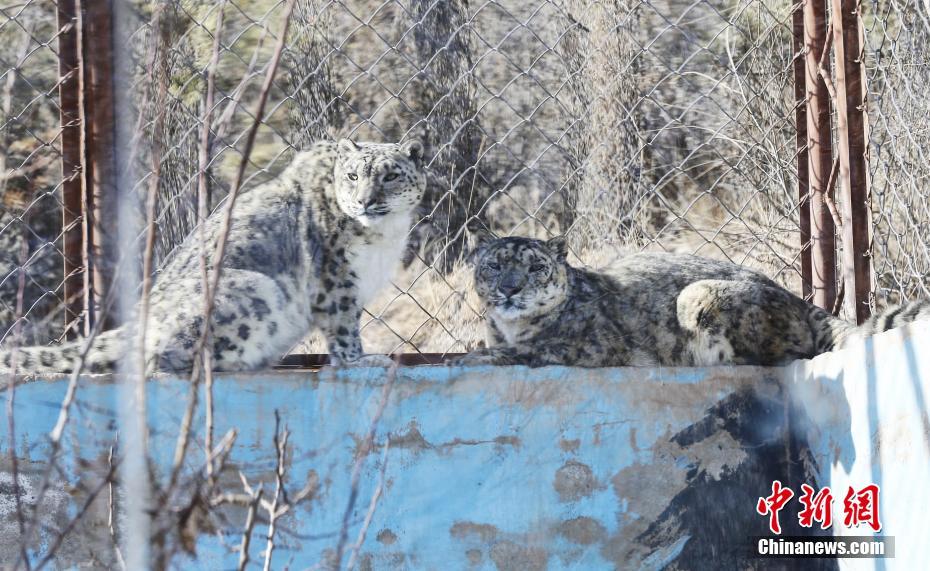 3月13日,青藏高原野生動(dòng)物園雪豹館內(nèi),“傲雪”(左)陪伴21歲的“大豹”(右)享受春日暖陽(yáng)。副園長(zhǎng)齊新章介紹,為了雪豹的身心健康,2017年,動(dòng)物園嘗試以科學(xué)、理性的技術(shù)將年幼的雌性“傲雪”和年老的雄性“大豹”合籠飼養(yǎng),發(fā)現(xiàn)“大豹”在“傲雪”的陪伴和帶動(dòng)下,活動(dòng)量明顯增加。據(jù)悉,2000年出生的“大豹”今年已21歲(相當(dāng)于人類105歲),突破雪豹的壽命極限值,且身體各項(xiàng)指標(biāo)穩(wěn)定。中新社記者 馬銘言 攝