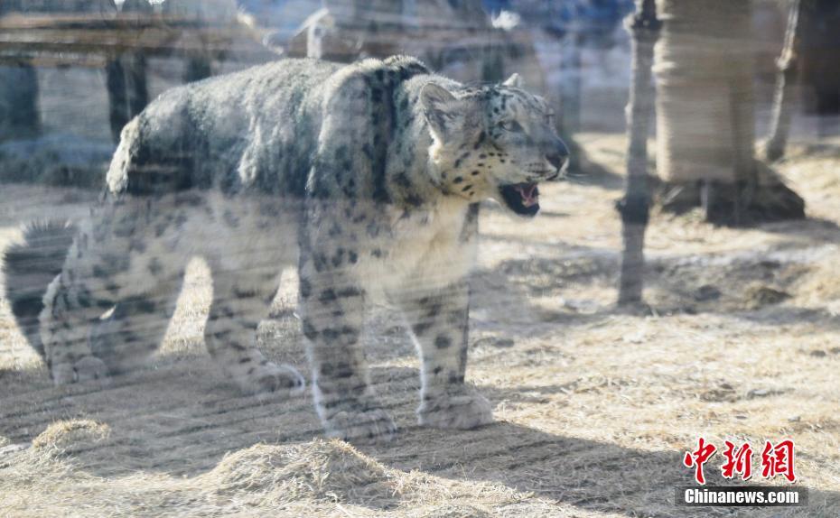 3月13日,青藏高原野生動(dòng)物園雪豹館內(nèi),21歲的“大豹”正在散步。中新社記者 馬銘言 攝
