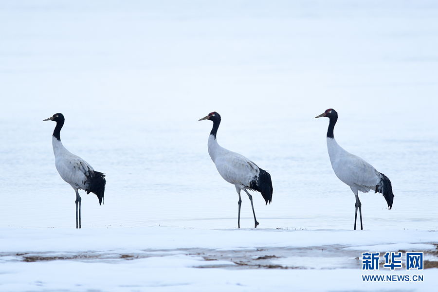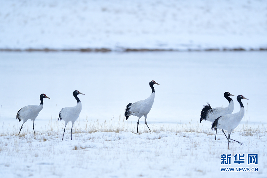 10月21日在三江源國家公園黃河源園區(qū)內(nèi)拍攝的黑頸鶴。新華社記者 張龍 攝