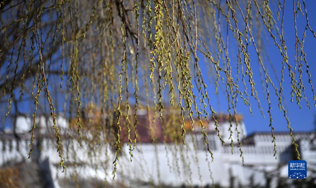 這是3月20日在布達拉宮廣場拍攝的柳枝。新華社記者 覺果 攝