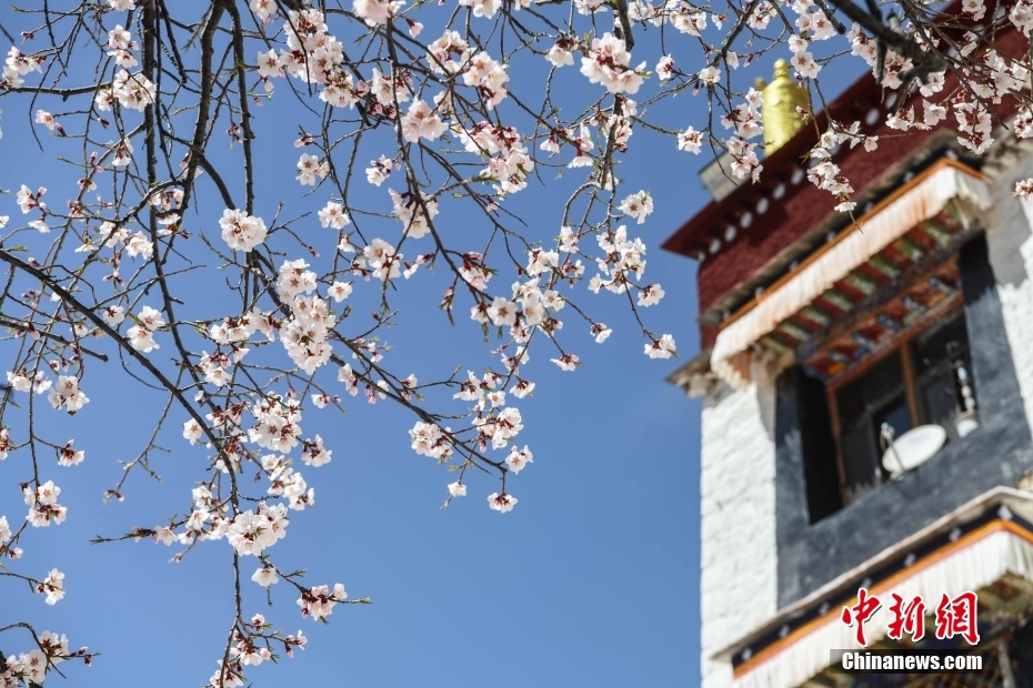 3月28日,位于拉薩北部山坳里的古剎帕邦喀,桃花盛開(kāi),春意濃濃。 中新社記者 貢嘎來(lái)松 攝