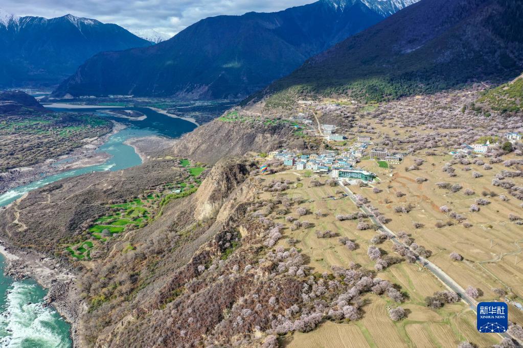 這是無(wú)人機(jī)拍攝的索松村,村子腳下是蜿蜒的雅魯藏布江(4月13日攝)。新華社記者 孫非 攝