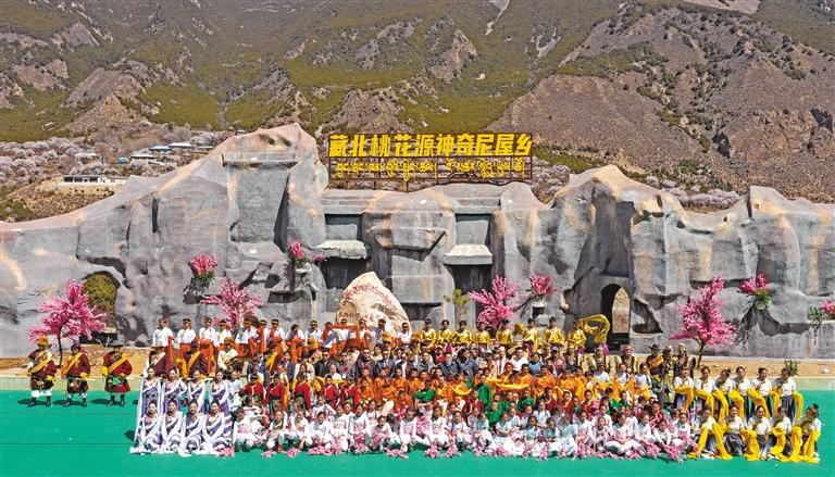 4月的西藏波密春意盎然,近處桃花遠(yuǎn)處雪,美如畫卷。