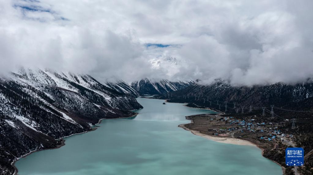 這是無人機(jī)拍攝的然烏湖(4月24日攝)。新華社記者 晉美多吉 攝