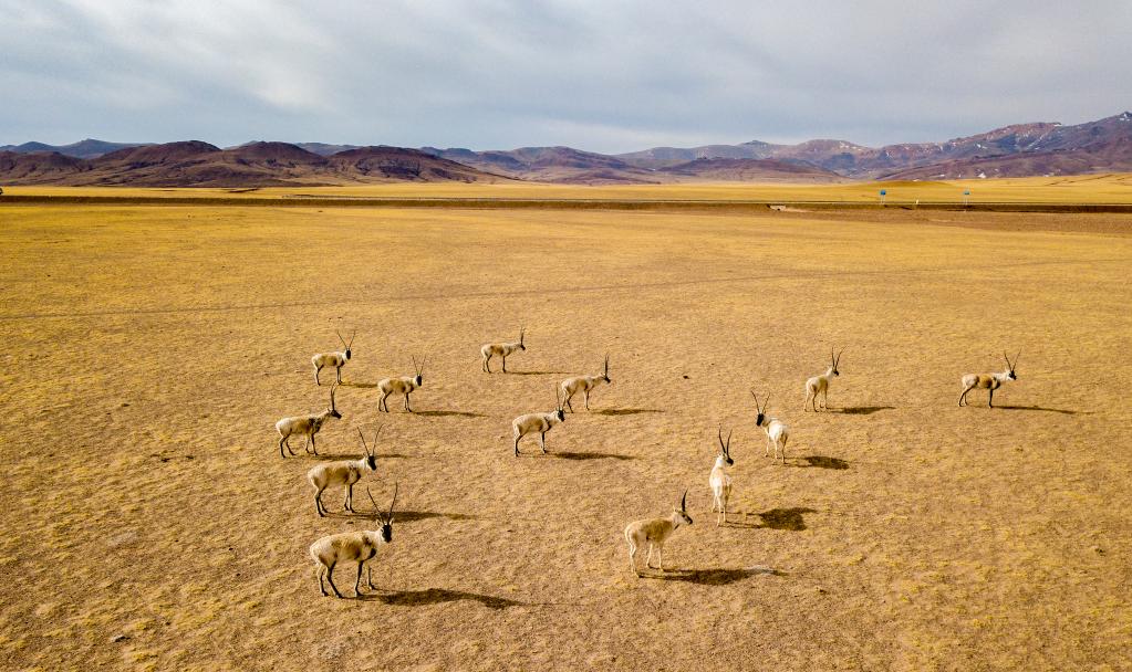 這是在阿里地區(qū)改則縣拍攝到的藏羚羊(4月13日攝,無人機照片)。公報顯示,藏羚羊種群數(shù)量由20世紀(jì)最低谷時的7萬余只增至30萬余只。新華社記者 姜帆 攝