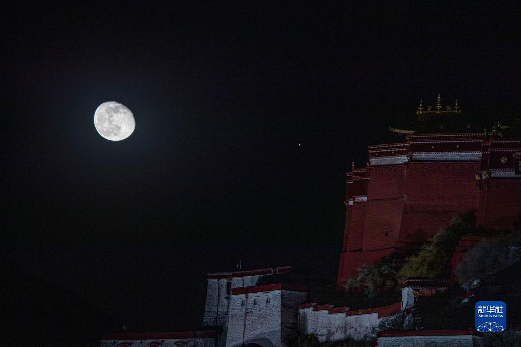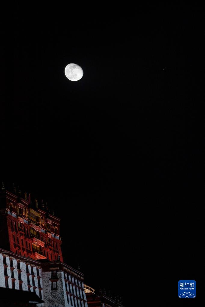 11月11日晚,一次賞心悅目的火星合月亮相天宇。這是在西藏拉薩市布達(dá)拉宮附近,記錄下的這幕“星月童話”。新華社記者 覺果 攝