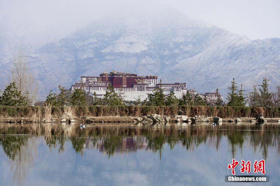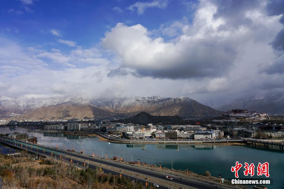 2月26日至27日,海拔3600多米的高原古城拉薩再次迎來降雪天氣,拉薩河兩岸延綿的山體猶如披上了一層白紗,一派高原特色城市風(fēng)光,景色秀麗。布達(dá)拉宮觀景臺、拉薩南山公園等地吸引了不少旅游攝影愛好者“打卡”古城雪景。圖為春雪過后的拉薩。