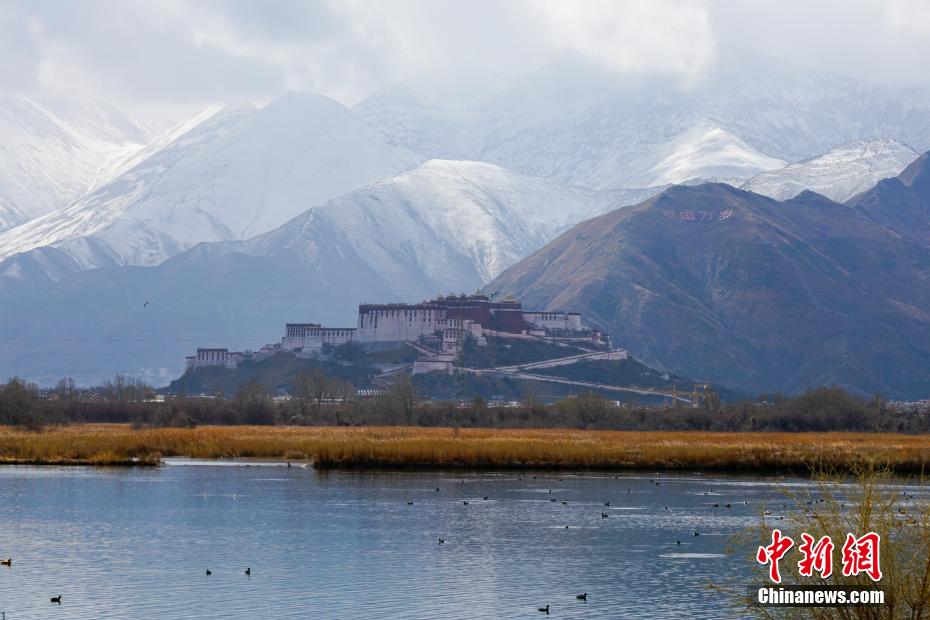 2月26日至27日,海拔3600多米的高原古城拉薩再次迎來降雪天氣,拉薩河兩岸延綿的山體猶如披上了一層白紗,一派高原特色城市風(fēng)光,景色秀麗。布達(dá)拉宮觀景臺、拉薩南山公園等地吸引了不少旅游攝影愛好者“打卡”古城雪景。圖為從拉魯濕地遠(yuǎn)眺布達(dá)拉宮與雪山風(fēng)光。