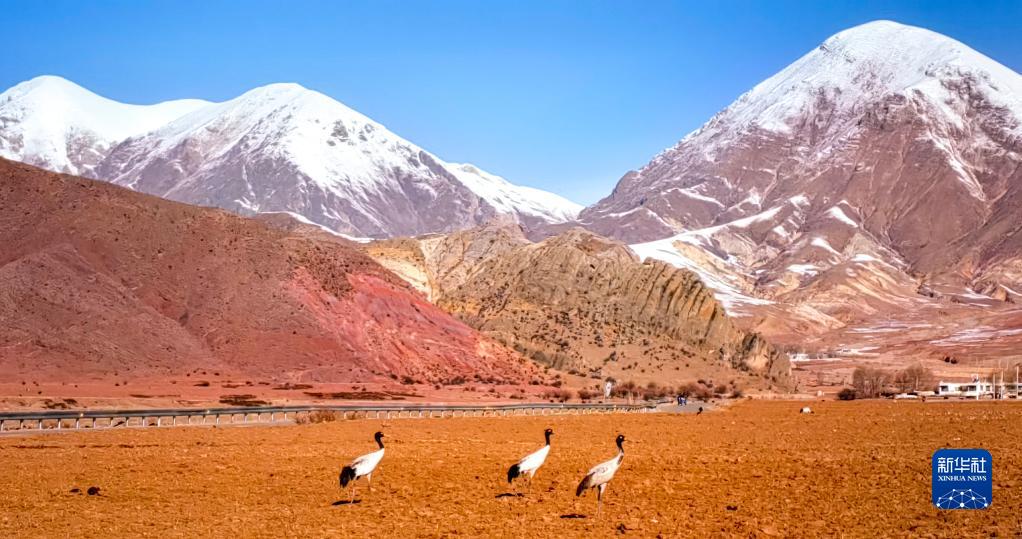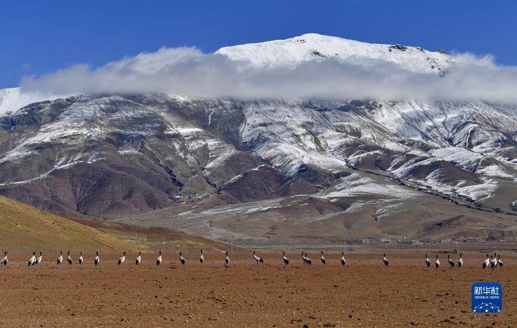 近日,西藏拉薩市各區(qū)縣迎來降雪。群山被白雪覆蓋,高原壯麗唯美。黑頸鶴、斑頭雁等翩躚起舞,拉薩河谷生機盎然。