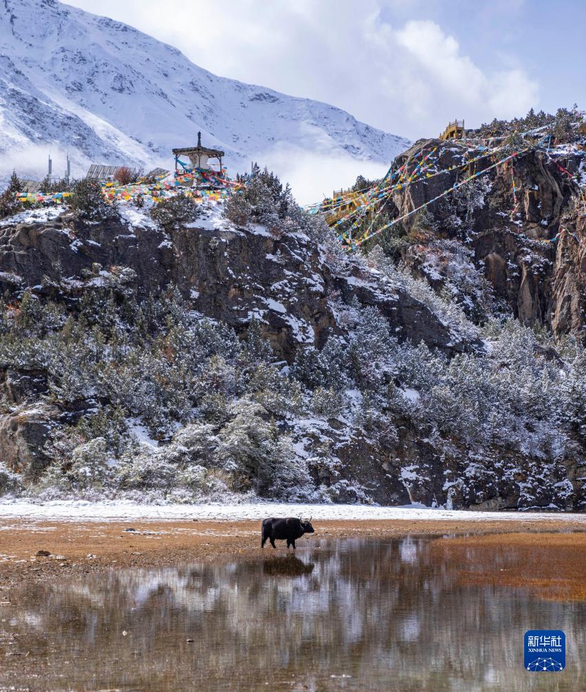 西藏昌都市邊壩縣位于念青唐古拉山脈南麓,由于海拔較高,10月末的邊壩縣已迎來降雪。這里雪山聳立,冰洞湛藍(lán),飛雪綿綿,巖羊在雪面上行走,美景如畫。
