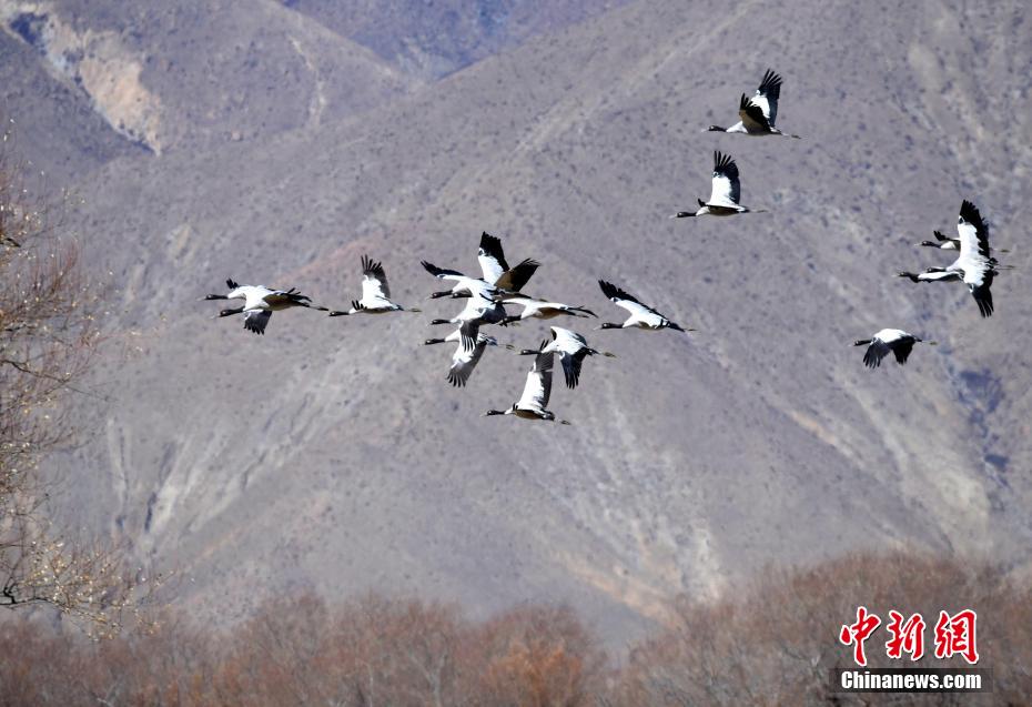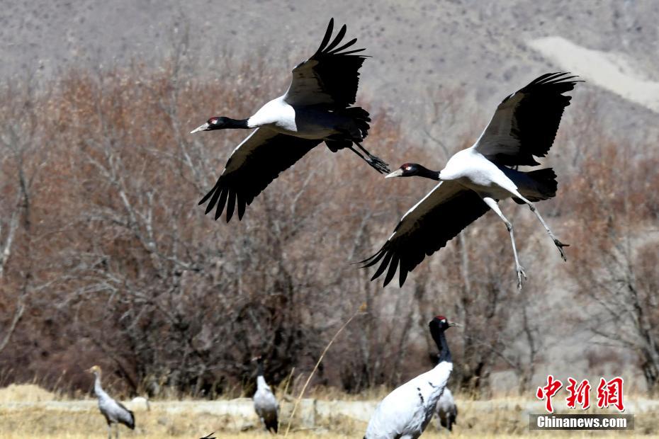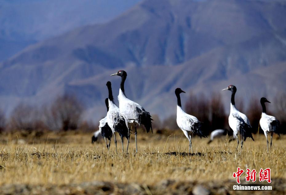西藏日喀則:越冬黑頸鶴成冬日田間美景