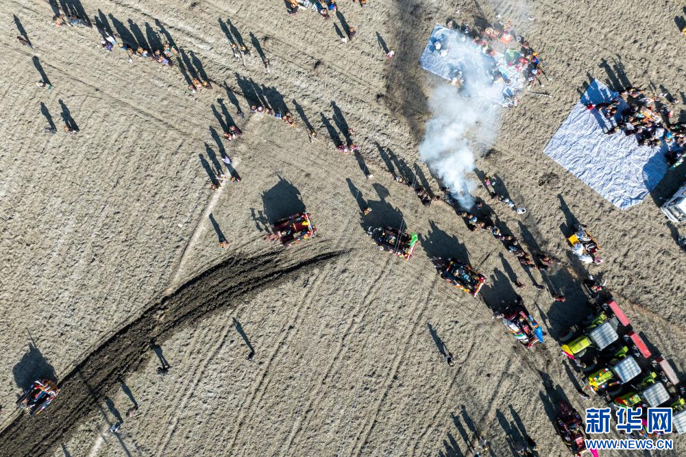 3月16日,克松社區(qū)居民在進(jìn)行春耕儀式(無人機(jī)照片)。新華網(wǎng) 旦增努布 攝