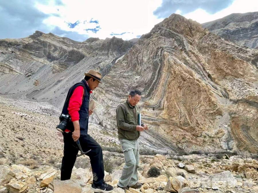 西藏日喀則市崗巴縣崗巴鎮(zhèn)吉汝村有一塊地勢較高的山坡,2021年,當?shù)卮逦瘯檬^和混凝土在斜坡上砌了一面黨旗和一面國旗,中間有“祖國萬歲”四個白色大字,在村口就能看見這處景觀,十分醒目。每年國慶節(jié)前夕,派出所都會組織駐地干部群眾來這里刷新描紅,只要沒休假,嘎色每次都會參加。