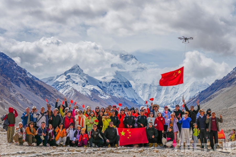 珠峰腳下 國旗飄揚(yáng)