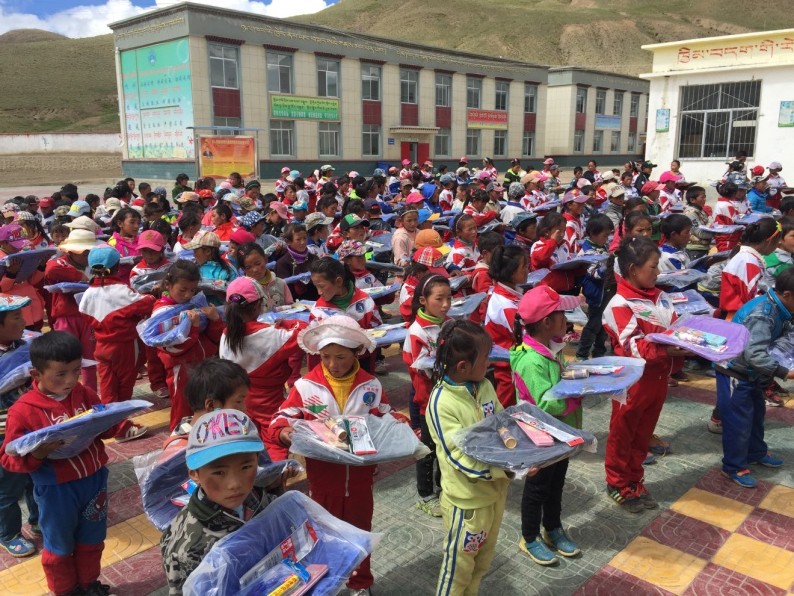 9月,也是村里孩子們開心的時刻。352份價值2萬余元的書包、文具、畫筆等慈善捐贈物資,從成都運抵千里之外的浪卡子縣倫布雪鄉(xiāng)。為了節(jié)約運費,我和隊友一起把貨物搬到車上,運回了村里,整齊地擺在了每一個學(xué)生的課桌上。孩子們用小手輕輕地撫摸著嶄新漂亮的書包和文具,歌聲笑聲回蕩在羊湖雪山之間。