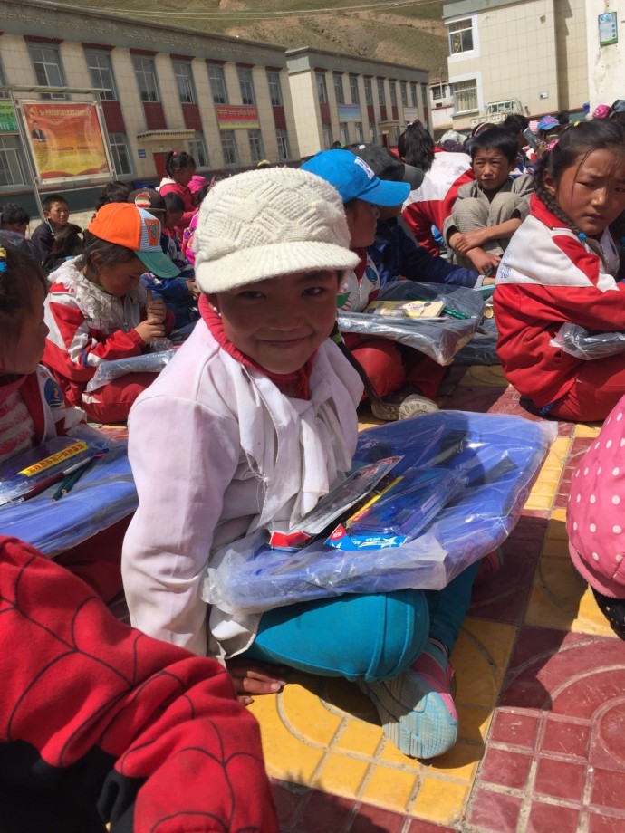 一天,我看到一個特別可愛的小女孩放學(xué)回家,就想到了自己的女兒,忍不住上前抱住她。我看見小女孩兒背著破舊的布包,就問道:“你背過新書包嗎?”她說:“我才三年級,阿媽說等我再大些就能有新書包背了。”看著這個可愛的孩子,想到了遠在成都不到2歲的女兒。自己總是省吃儉用,想把最好的都給她。再看看眼前這個孩子,我的眼睛濕潤了……我下定決心,一定要讓這些沒有背上過新書包的孩子們在新學(xué)期有新的書包和文具。