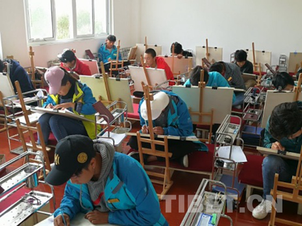 近年來,郎卡杰畫派唐卡將文化傳承保護和群眾就業(yè)增收有效地結(jié)合起來,逐漸走出了一條“政府扶持、公司培養(yǎng)、定向就業(yè)”的發(fā)展道路。