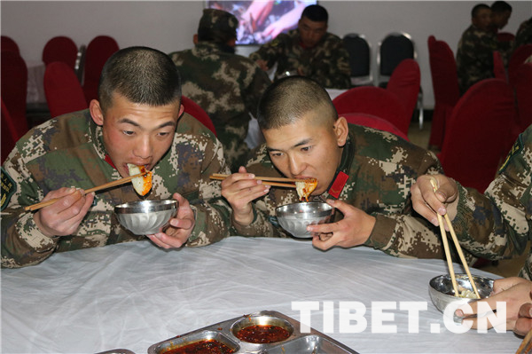 據(jù)悉,該總隊(duì)各基層單位還組織了撲克、套圈、乒乓球、臺(tái)球等有獎(jiǎng)比賽,進(jìn)一步密切了官兵之間的關(guān)系,使官兵在享受游戲歡樂的同時(shí)增長(zhǎng)了知識(shí),特別是讓新戰(zhàn)士在部隊(duì)度過的第一個(gè)春節(jié)不“孤單”。警通勤務(wù)中隊(duì)新戰(zhàn)士薛小龍說:“我雖是第一次離家過年,心里難免會(huì)有些想家的念頭,但在這么溫馨的大家庭里跟戰(zhàn)友們一起過年,這樣的氛圍更有一番年味,我一定會(huì)安心服役,圓滿完成好上級(jí)賦予的各項(xiàng)任務(wù),做一個(gè)讓領(lǐng)導(dǎo)放心,讓家人安心的好戰(zhàn)士。”(中國(guó)西藏網(wǎng) 圖、文/夏明勇、潘興耀)