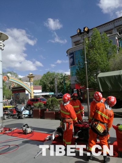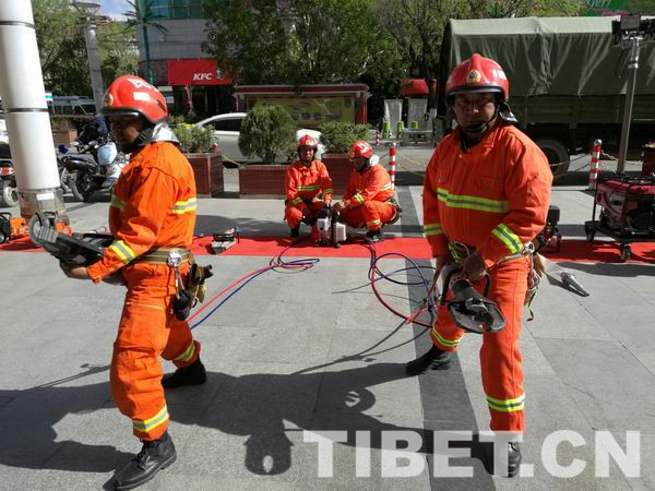 圖為拉薩警備區(qū)城關(guān)區(qū)人武部搶險救援分隊民兵進(jìn)行救援裝備操作展演示