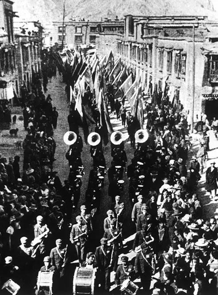 中國人民解放軍第18軍入藏部隊入城式,進入八廓街。興華 攝
