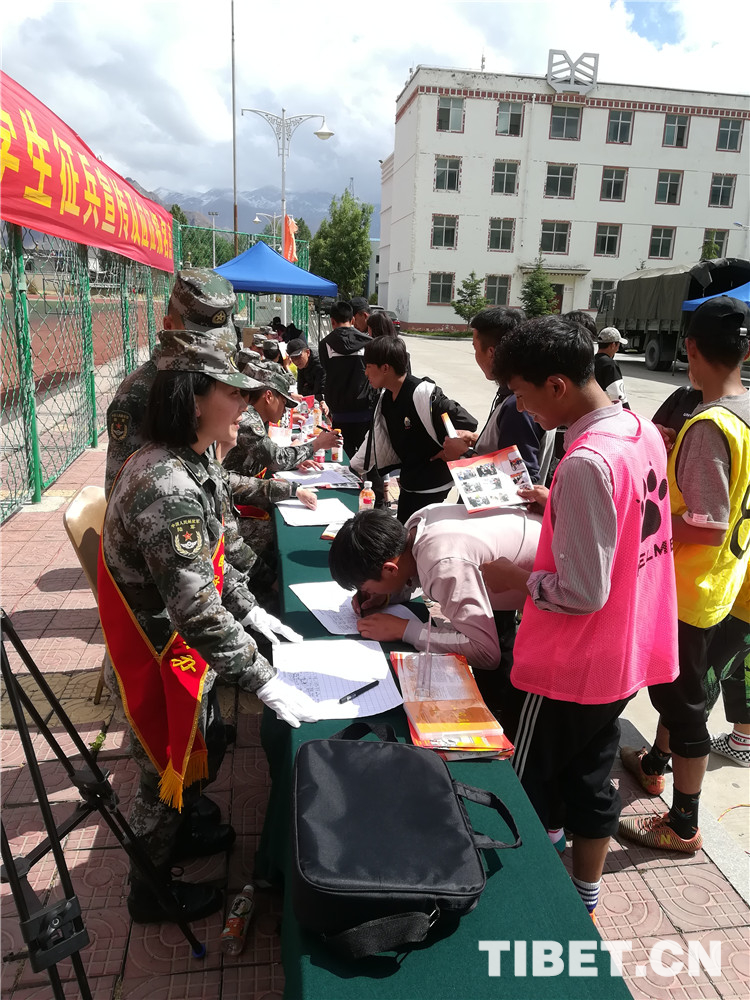 圖為2018年拉薩市大學生征兵宣傳現場