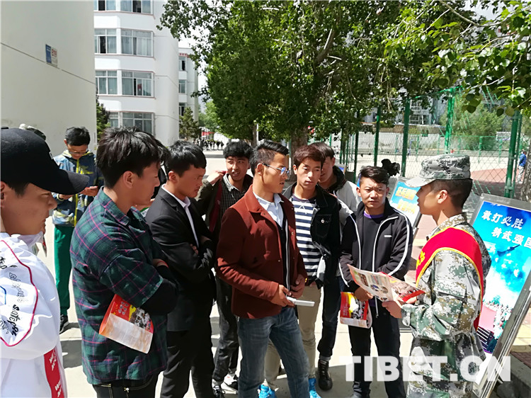 圖為拉薩警備區(qū)征兵宣傳人員對學生提出問題的進行現場解答。