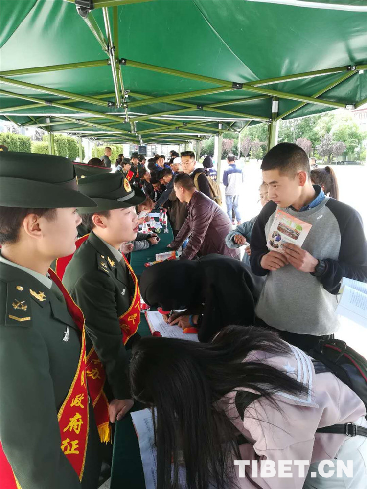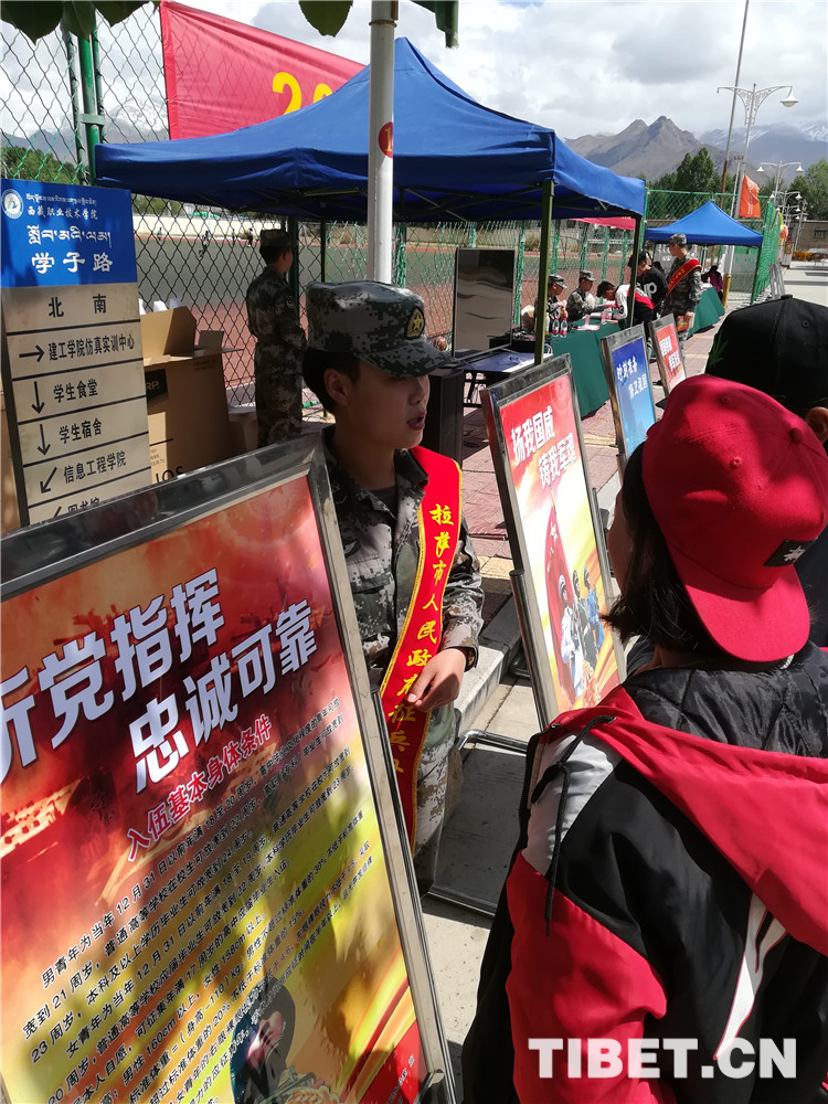 圖為拉薩警備區(qū)征兵人員在西藏職業(yè)技術學院開展宣傳活動。