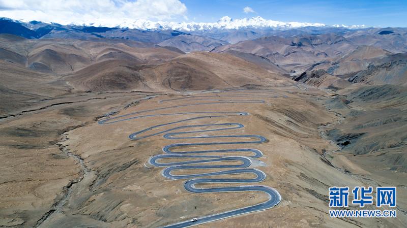 圖為:珠峰公路蜿蜒通向遠(yuǎn)處的喜馬拉雅山脈。圖片來(lái)源:新華網(wǎng)