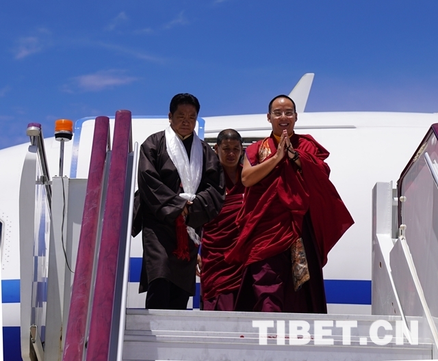7月17日,十一世班禪乘坐的飛機(jī)抵達(dá)拉薩貢嘎機(jī)場時(shí),西藏自治區(qū)黨委常委、統(tǒng)戰(zhàn)部部長旦科站在歡迎隊(duì)伍最前面迎接,敬獻(xiàn)哈達(dá),握手致禮,表達(dá)西藏自治區(qū)黨委、政府的歡迎。
