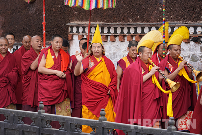 十一世班禪面帶笑容,緩步進(jìn)入主殿。攝影:王媛媛