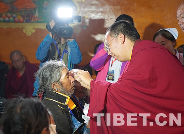 十一世班禪為白內(nèi)障患者揭紗。攝影:王淑