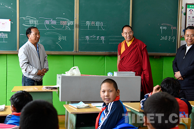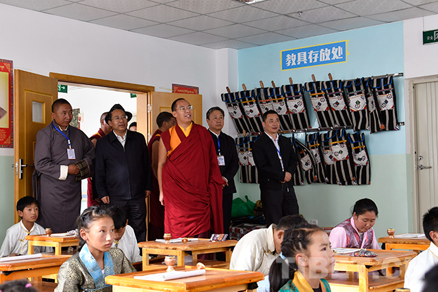 圖為十一世班禪參觀調(diào)研學校。攝影:王淑