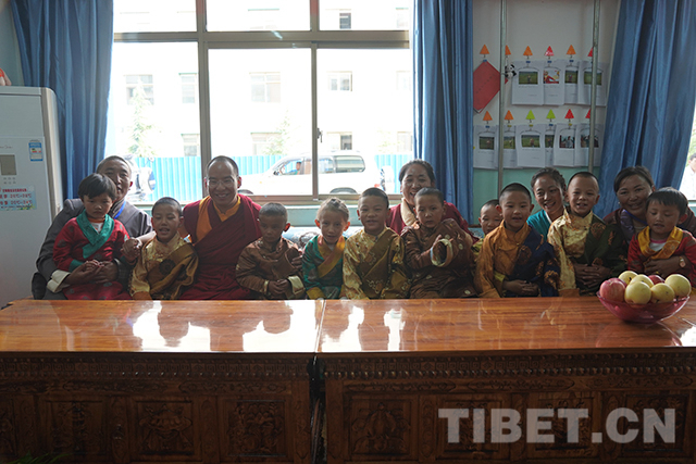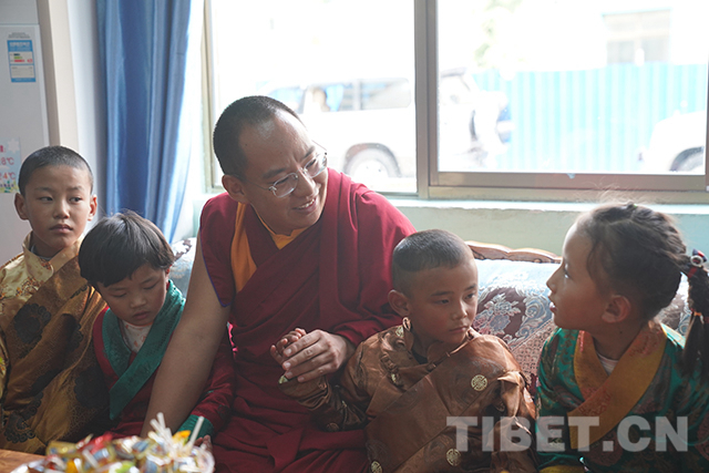 看望完殘障學生后,十一世班禪又來到山南市兒童福利院,看望在這里生活的山南市和那曲市部分孤兒。本著“一心想著孩子,一切為了孩子”的理念,福利院為460多名孩子提供了室內(nèi)外活動室、電教室、圖書室、美術(shù)室、成長教育園地、舞蹈室、藏文書法室等,孩子們可以在這里學習文化、增長見識。