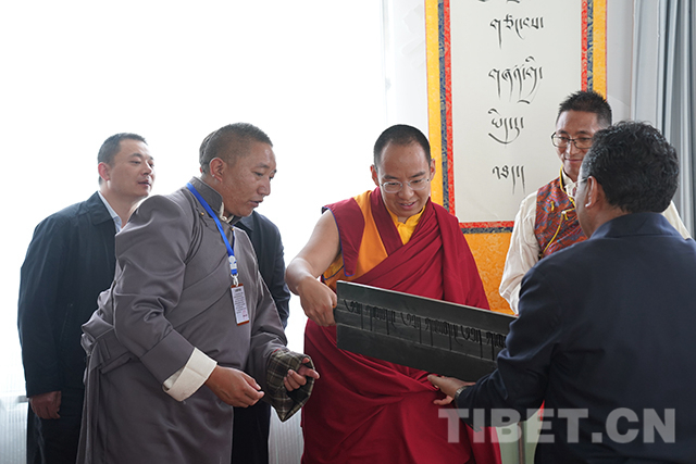 十一世班禪來到藏文書法室。攝影:王淑