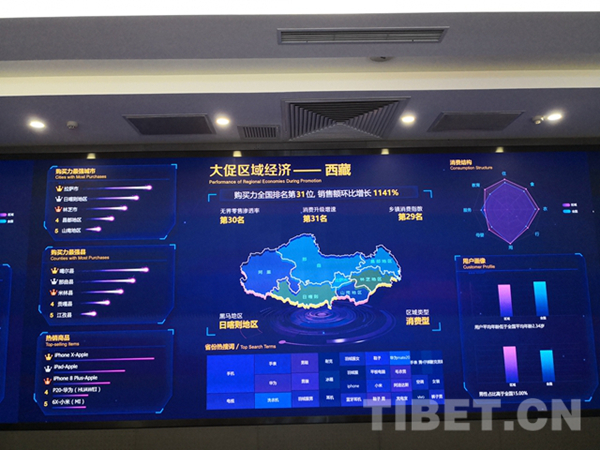 圖為11月11日13時(shí)42分京東電商平臺(tái)統(tǒng)計(jì)的大促區(qū)域經(jīng)濟(jì)西藏?cái)?shù)據(jù)。