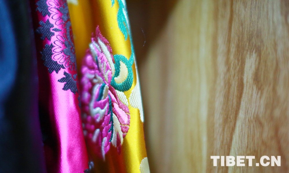 圖為絢麗的藏裝衣料。
