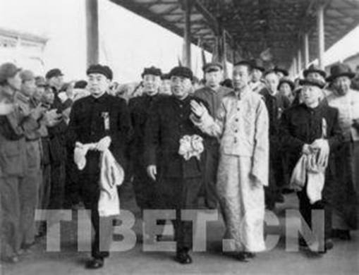 1951年4月27日,十世班禪首次進(jìn)京,周恩來(lái)總理、朱德總司令等黨和國(guó)家領(lǐng)導(dǎo)人前往車站迎接。