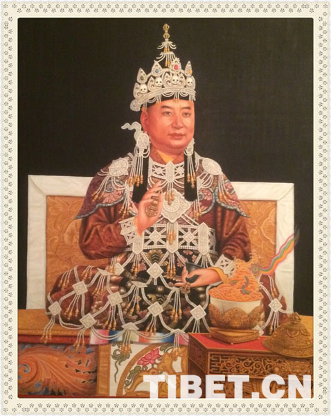圖為安多強(qiáng)巴的唐卡作品:《十世班禪大師》。