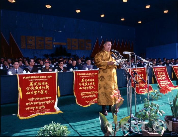 十世班禪大師在西藏自治區(qū)成立20周年慶祝大會上講話,1985年。劉麗嘉攝