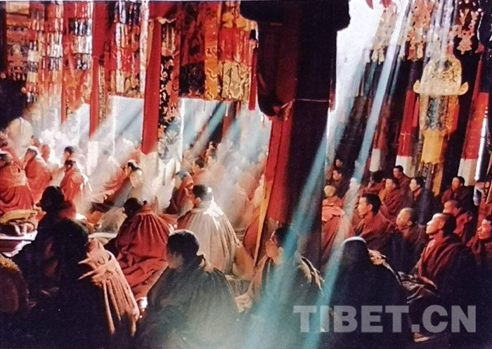 十世班禪大師在拉薩大昭寺祈愿大法會上為廣大僧眾講經(jīng)。劉麗嘉攝