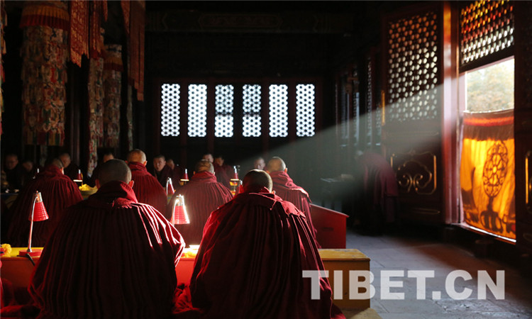 8時30分,法會開始,教職人員按既定儀軌,誦讀經(jīng)文,虔誠祈禱,法會現(xiàn)場肅穆莊重。(中國西藏網(wǎng) 記者/楊月云)