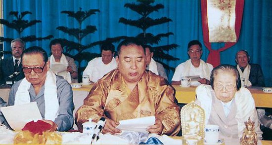 圖為習(xí)仲勛(左一)、十世班禪(中)、鄧穎超(右一)、參加中國藏語系高級佛學(xué)院成立大會。圖片來源:人民日報