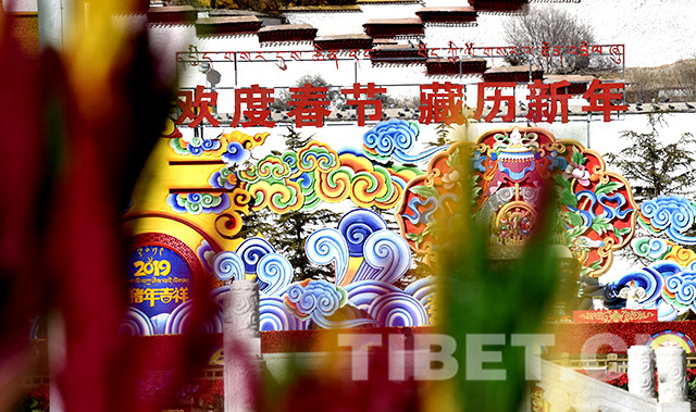 圖為布達拉宮廣場裝飾一新迎新年。