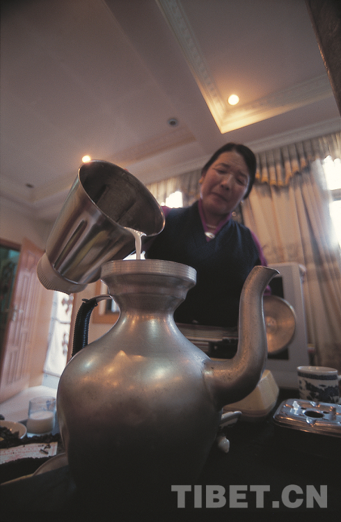 另一位在北京工作的藏族好友,每次去他家做客總能喝到純正的酥油茶;他的冰箱冷凍室里總是塞滿了黃黃的酥油……他說,每次他回拉薩或是家鄉(xiāng)的朋友來北京看他,必定會(huì)帶上酥油和茶葉。在內(nèi)地十多年了,愛喝酥油茶的習(xí)慣怎么也改不了?,F(xiàn)在他去了外地工作,我想我要是去看他,也會(huì)帶上一塊厚厚的酥油和一大包他喜歡的茶葉!