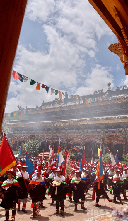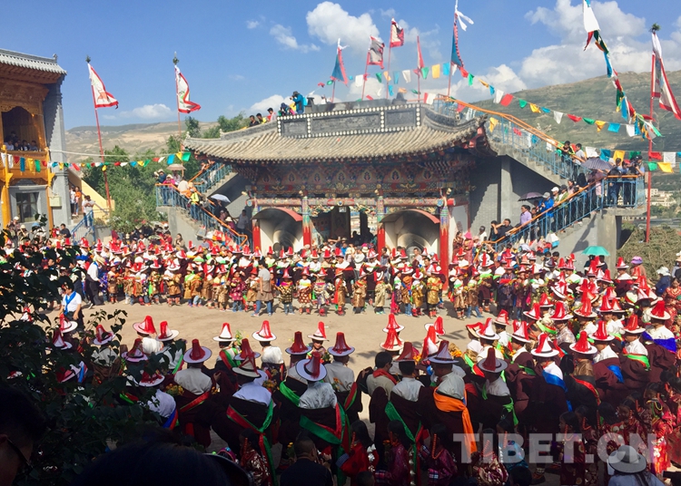 圖為軍舞儀式,軍舞傳說(shuō)是為紀(jì)念唐蕃停戰(zhàn)交好而舞