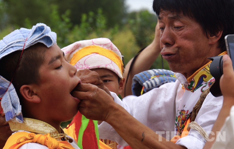 如果不來(lái)熱貢六月會(huì),我不會(huì)知道,小小的少年可以那么勇敢——眼看一根鋼釬穿過(guò)自己的臉頰竟毫無(wú)懼色!如果不來(lái)熱貢六月會(huì),我也不會(huì)知道,神舞儀式中盛裝款款的少女能美得那般端莊和肅穆!