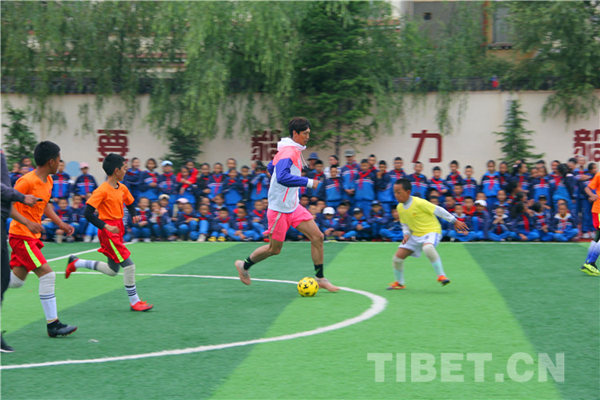 幾個漂亮的顛球,讓孩子們一下子著了迷,團(tuán)團(tuán)圍住許湛和鄭超,喊著“愛心教練,教教我們?!奔?xì)雨霏霏、氣溫很低,在教練們的專業(yè)指導(dǎo)下,孩子們在球場上快樂地踢球。許湛說:“很佩服這里高原孩子的體力和耐力,希望在運動方面能多多交流,希望能發(fā)現(xiàn)好的苗子。”也表示會把公益活動堅持做下去,幫助高原少年圓足球夢。(中國西藏網(wǎng) 記者/王茜)
