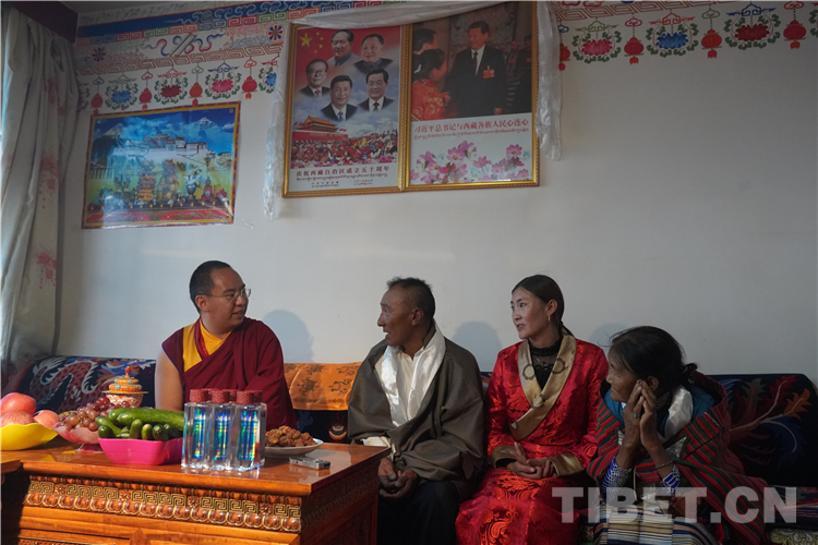 中國西藏網(wǎng)訊 “這是我們?nèi)迦诵迊淼母7??!蔽鞑刈灾螀^(qū)阿里地區(qū)日土縣甲崗邊境建設(shè)第一村扎西頓珠一家說出了村民們共同的心聲。7月26日,全國政協(xié)常委、中國佛教協(xié)會(huì)副會(huì)長、中國佛教協(xié)會(huì)西藏分會(huì)會(huì)長班禪額爾德尼?確吉杰布前往甲崗村調(diào)研,并走訪慰問旺堆平措、扎西頓珠兩戶群眾家庭。