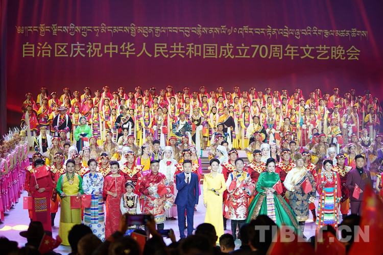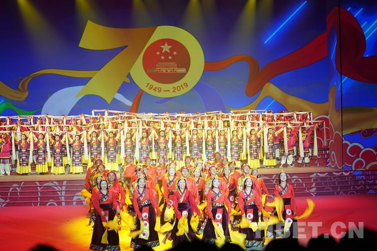 中國西藏網(wǎng)訊 歡歌起舞迎盛世,為表達西藏各族人民群眾對共產(chǎn)黨的無限熱愛和對祖國母親的深深祝福,9月28日晚,由西藏自治區(qū)黨委宣傳部、西藏自治區(qū)文化廳主辦、西藏自治區(qū)歌舞團承辦的西藏自治區(qū)慶祝中華人民共和國成立70周年文藝晚會在藏戲藝術中心舉行。